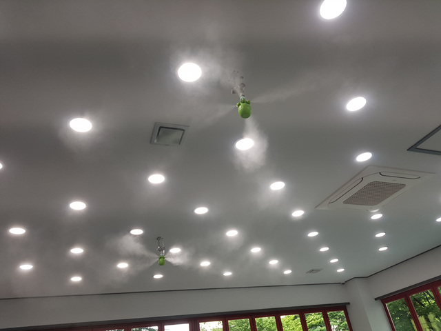 시공전 연무기를 이용해 공중에 떠다니는 먼지를 제거 합니다