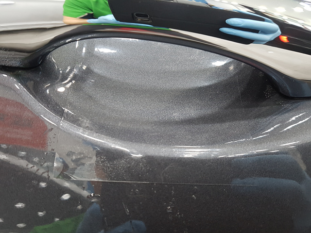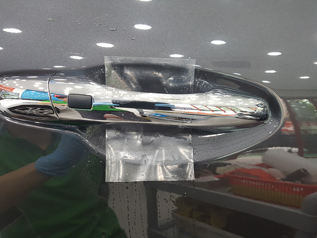우선 시공할 곳에 유분 제거작업을 합니다. 신차 또는 기존차량 모두 거쳐야 하는