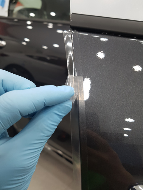 도어캡의 시공도 엣지와 같이 유분제거후 필름 부착을하고 보호 필름을 벗겨내게 됩니다.